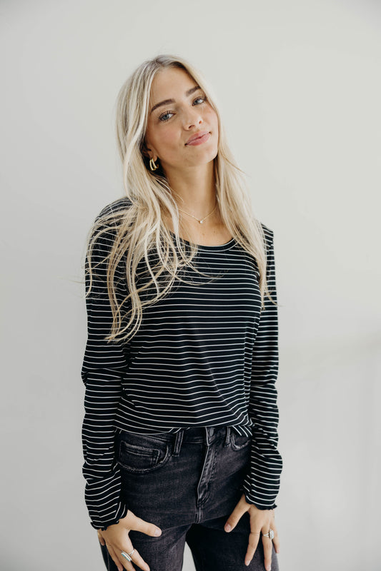 LONG SLEEVE RIBBED TEE IN BLACK STRIPE FINAL SALE