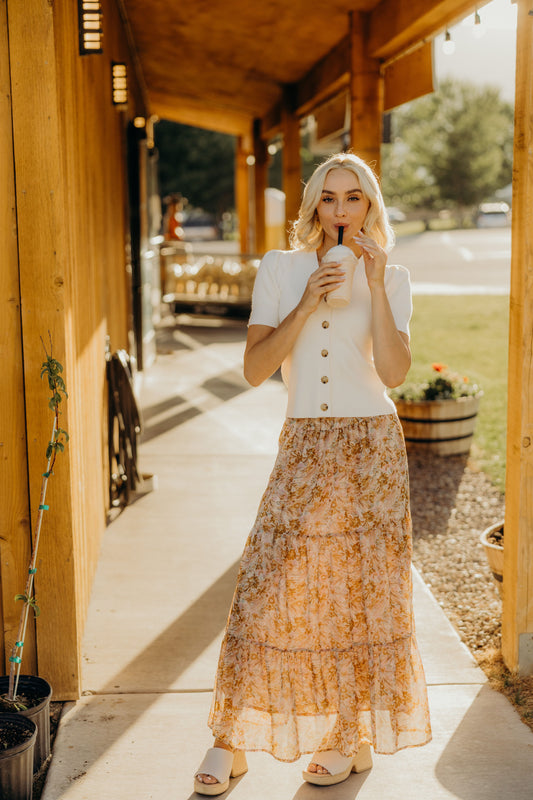 POINTELLE BUTTON CARDIGAN IN BUTTER