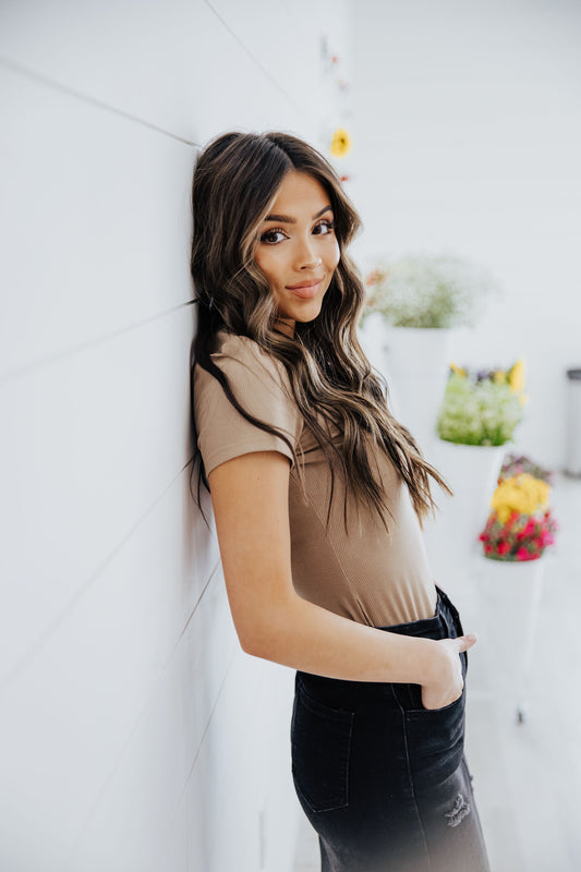 RIBBED LONG SLEEVE BODYSUIT IN NUDE FINAL SALE