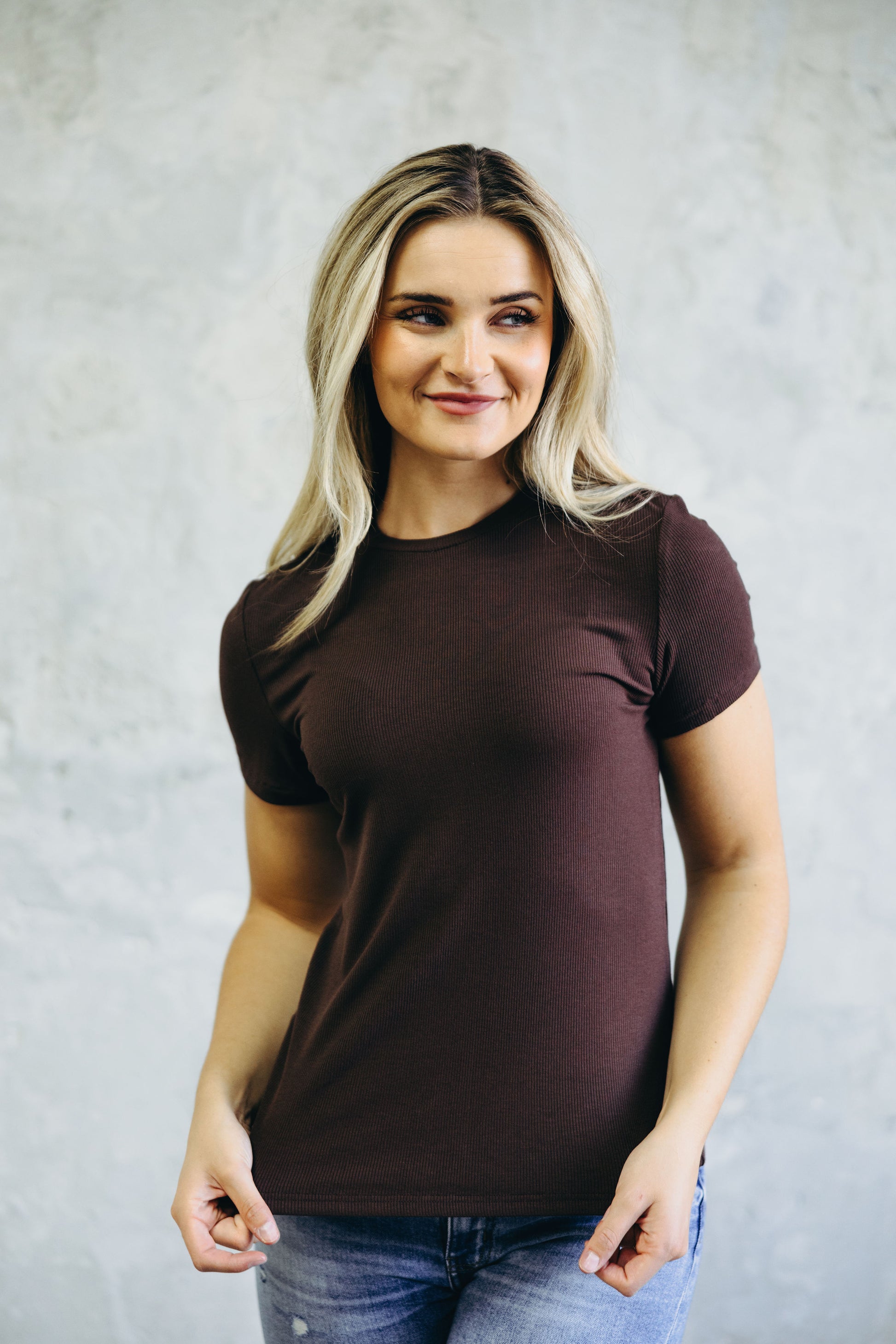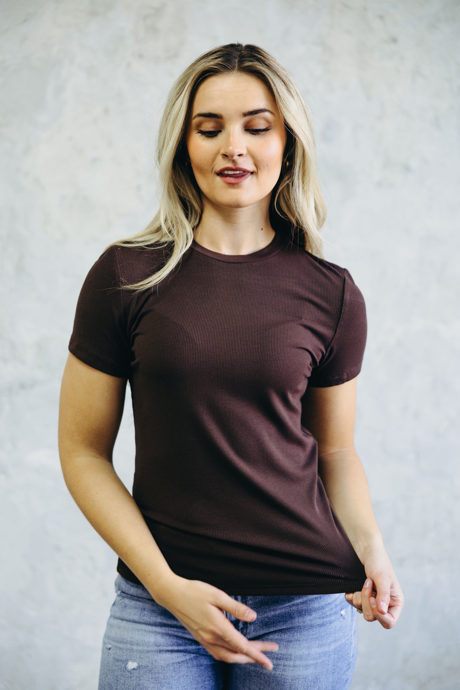 SHORT SLEEVE RIBBED TEE IN EGGPLANT