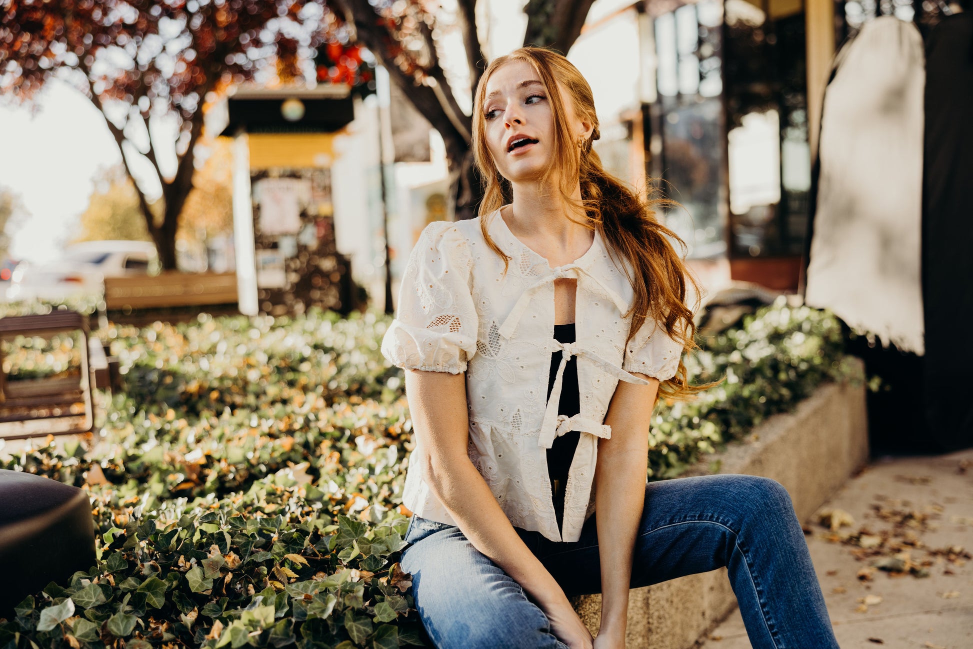 TIE FRONT LACE BLOUSE IN ANTIQUE CREAM